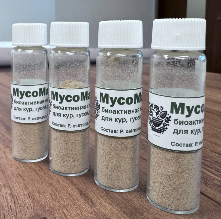 В качестве источника белка в кормовой добавке используется грибная биомасса. В сравнении с добавками растительного происхождения, производство данного продукта более дешевое и не зависит от сезона, при этом производство продукта экологически чистое. Разработаны разные формулы комбикормов для 4 опытных групп и разных возрастных периодов.