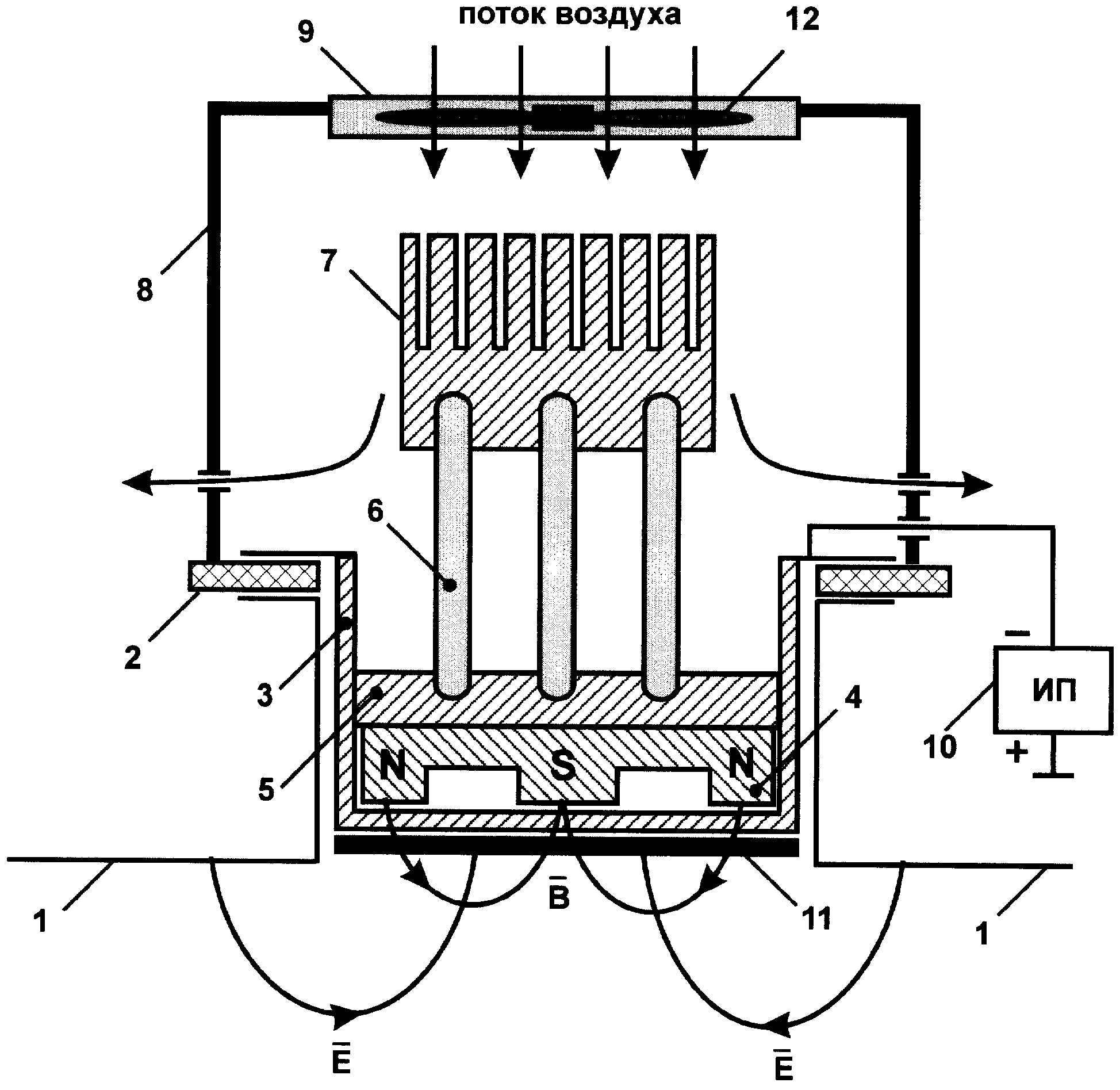 Предлагаемая полезная модель относится к области нанесения покрытий при физическом распылении металлов и касается установки ионно-плазменного распыления, в которой постоянной магнитное поле перпендикулярно постоянному электрическому полю.